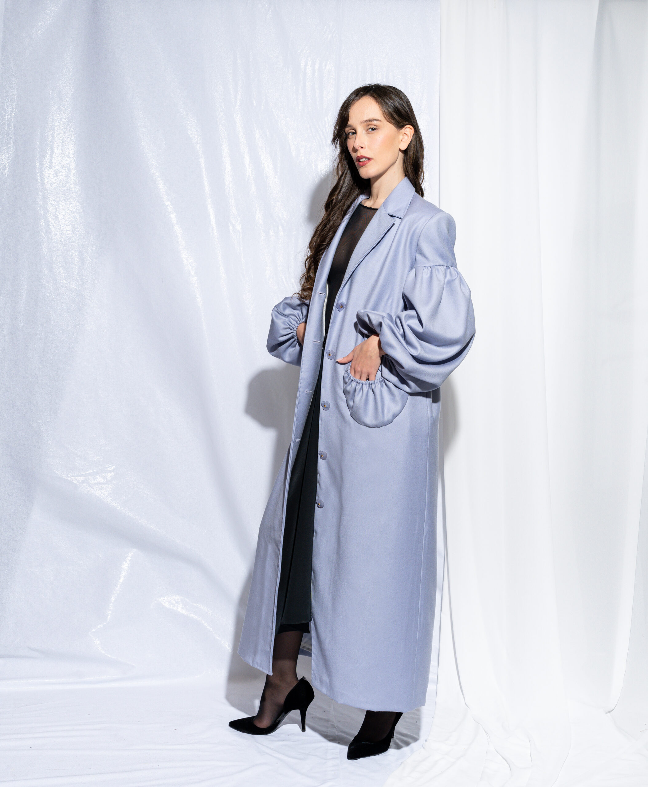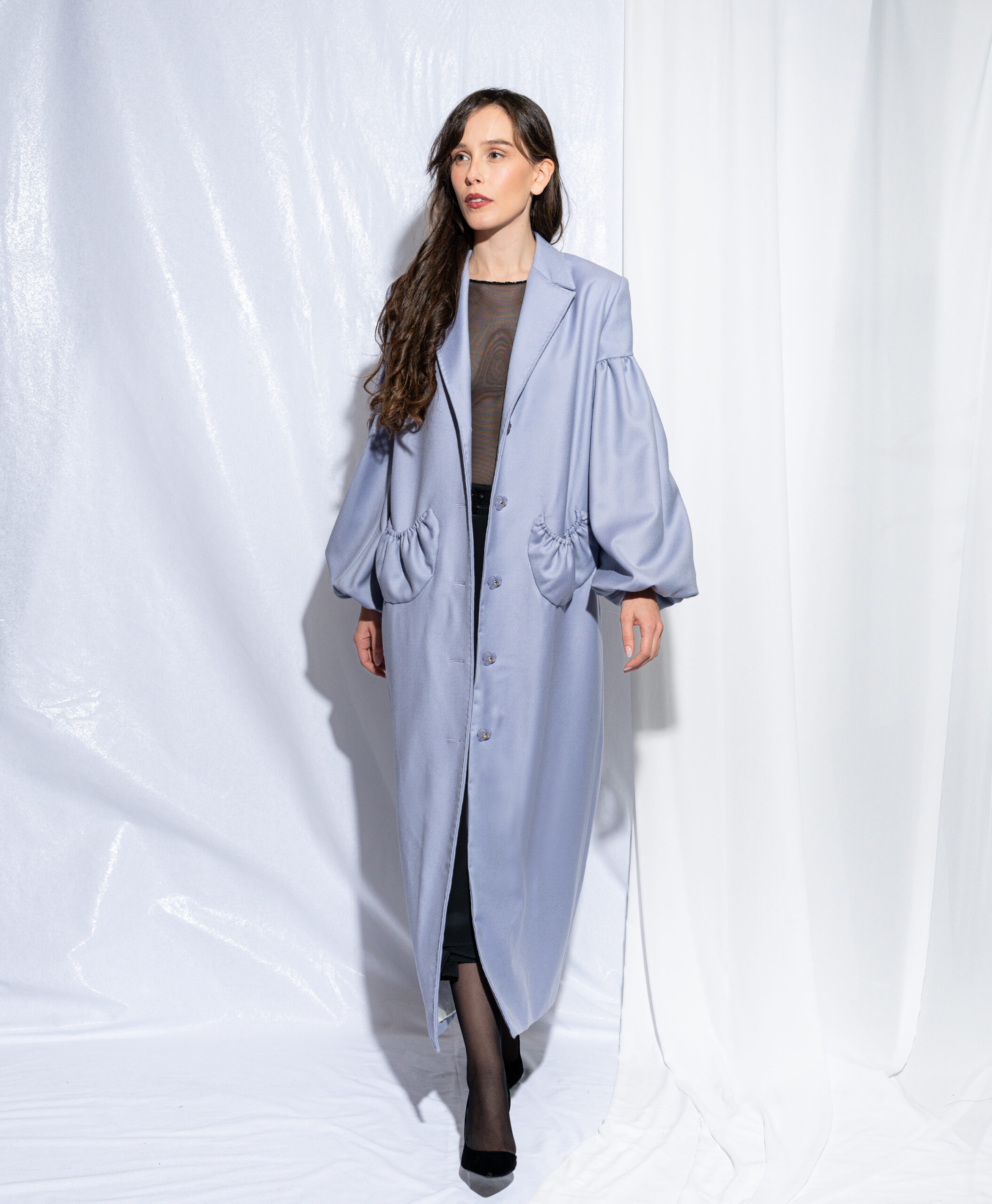Cappotto lungo in lana con fodera in viscosa, pensato per un comfort leggero e quotidiano. Le maniche a sbuffo aggiungono un tocco femminile, mentre la linea dritta dal taglio sartoriale assicura una vestibilità pulita e raffinata.